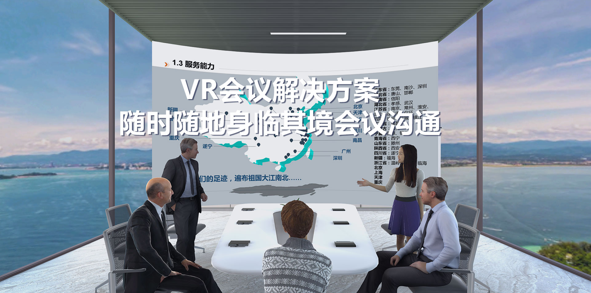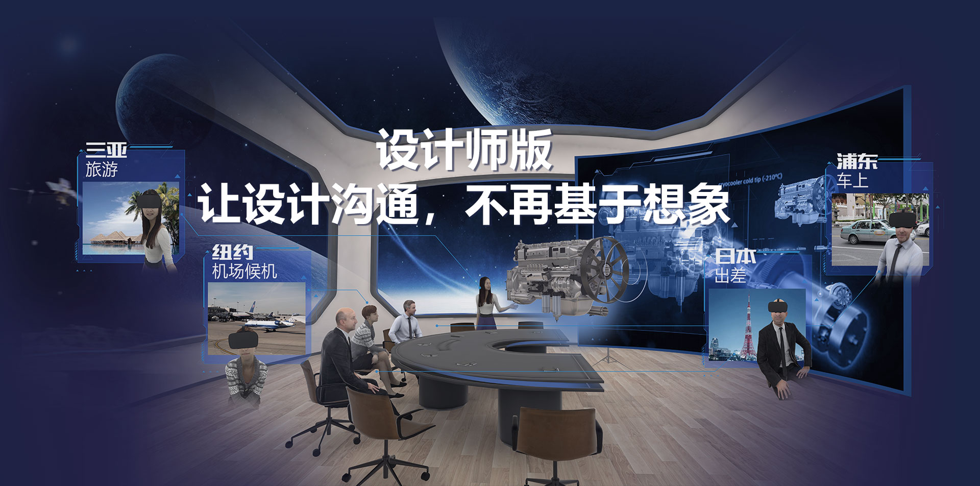 通过VR技术+云服务网络部署,实现多人、异地实时沉浸式协作沟通平台;可适用于沟通、汇报、展示、培训、营销、协作等各种应用场景;